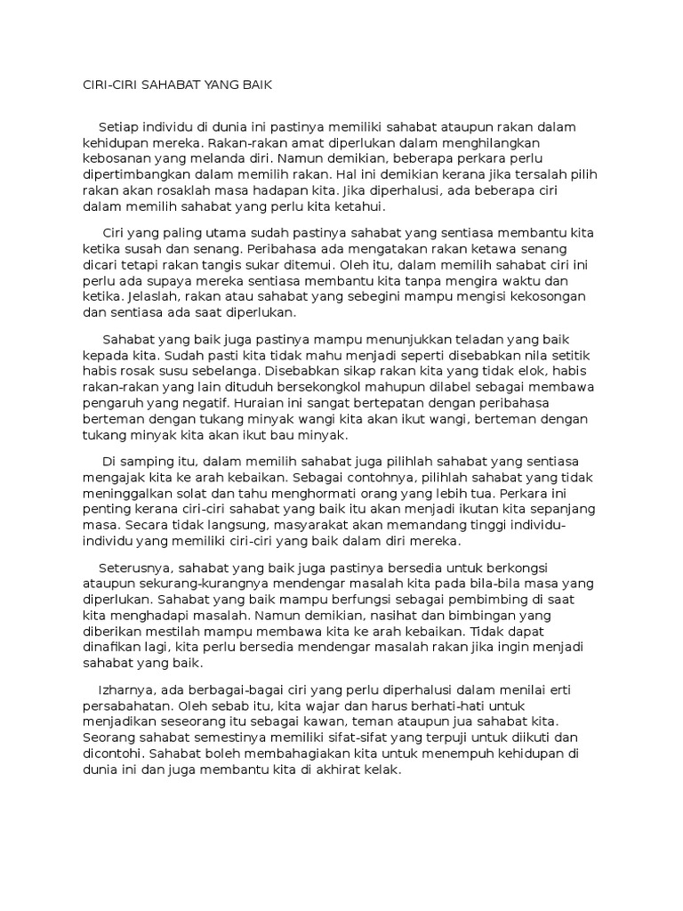 Ciri ciri kawan yang baik. Check spelling or type a new query. We did not find results for: Maybe you would like to learn more about one of these?